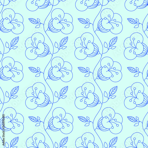 Seamless floral pattern with bellflowers on a blue background