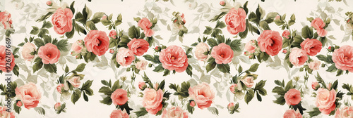 Seamless Floral Pattern with Red and Pink Roses on Cream Background