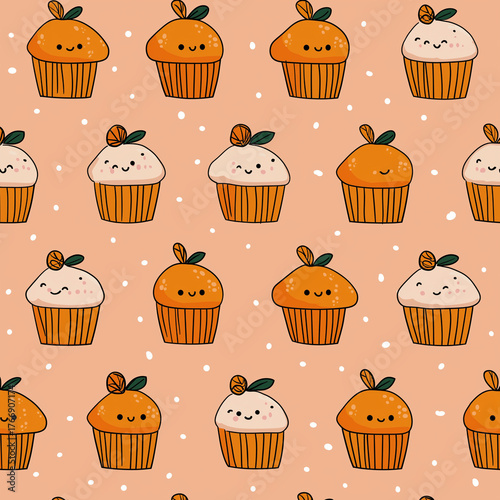 seamless pattern cartoon cute cupcake with orange fruit. cute food pattern for wallpaper and gift wrap paper