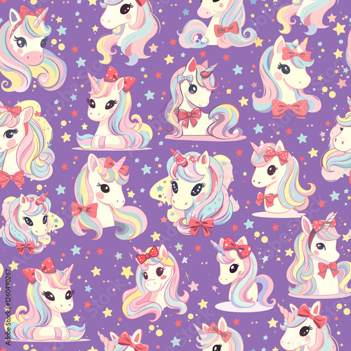 Seamless Pattern Design with Colorful Unicorns and Stars on a Background – Perfect for Home Textiles, Fabric Design, Wall Decor, Scrapbooking, Digital Paper, Notebooks, and More