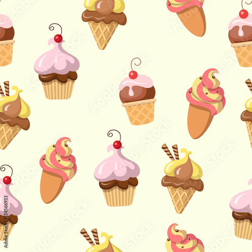 Seamless Pattern Fresh Tasty Ice Cream Isolated