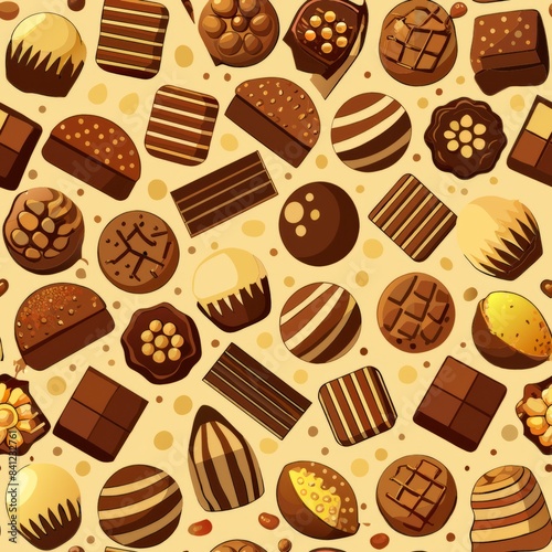 Seamless pattern of chocolate bars, truffles, and bonbons, perfect for a luxurious and indulgent design, Generative AI