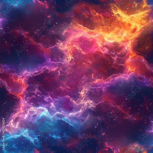 Seamless pattern of neon nebula clouds, adding ethereal and colorful elements to the cosmic desig