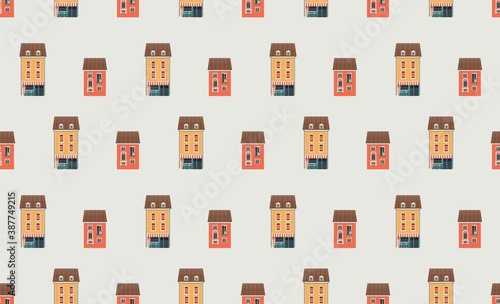seamless pattern small houses two floors