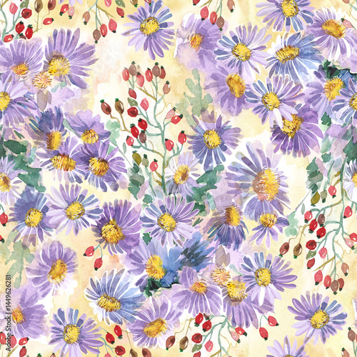 seamless pattern with blue daisies