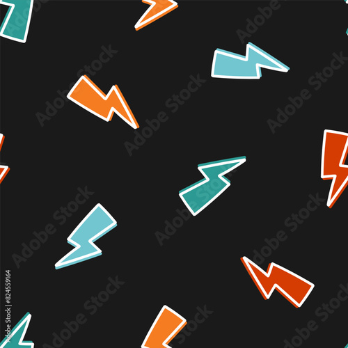 Seamless pattern with colorful lightning bolt and black background