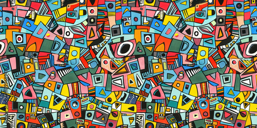 Seamless pattern with geometric shapes and bright colors, inspiring joy and boundless creativity.