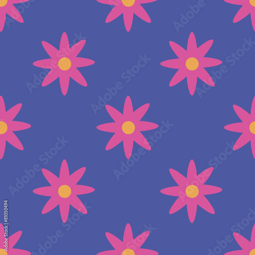 Seamless pattern with pink flowers on blue background