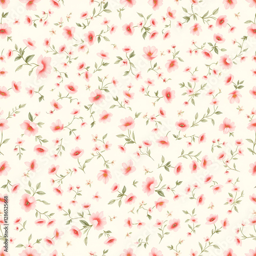 Seamless Pink-Red Floral Pattern on Cream Background