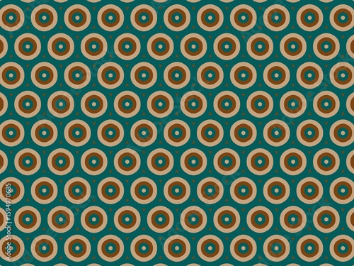 Seamless retro pattern with concentric circles in teal, brown, and beige, perfect for textile prints and vintage designs.