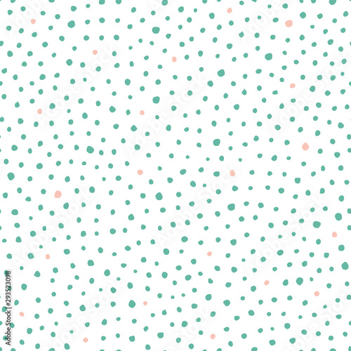 Seamless vector hand drawn dot pattern with hand painted irregular green and pink dot in wavy movement. Graphic and modern design for scrapbooking, stationary, fashion and packaging design.