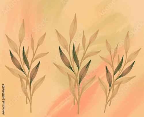 Seamless watercolour illustration with willow tree pattern in shades of green, grey and pink colours