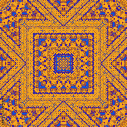 Seamless yellow abstract symmetry kaleidoscope geometric pattern