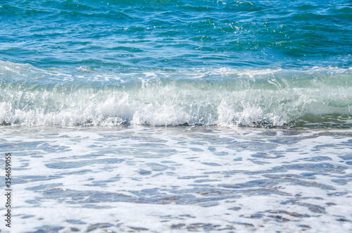 Seascape background white waves on blue sea