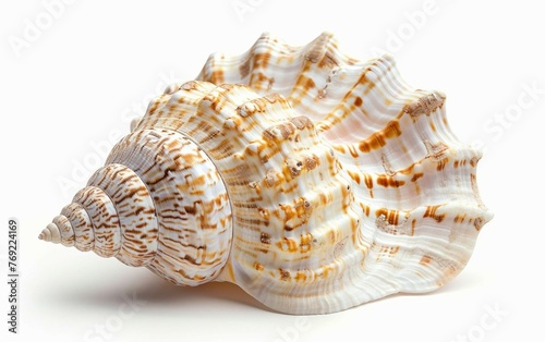 Seashell Adorned with Intricate Patterns Isolated on White Background.