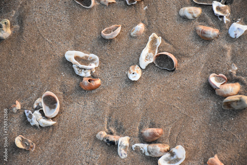 Seashells on a beach sand background