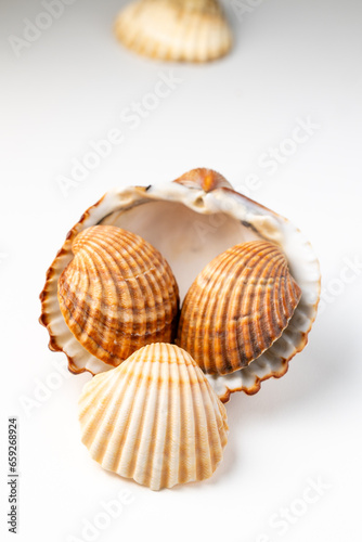 seashells on white background in macro photography