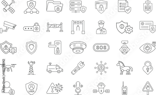 Security system and protection technology vector icons set outline design
