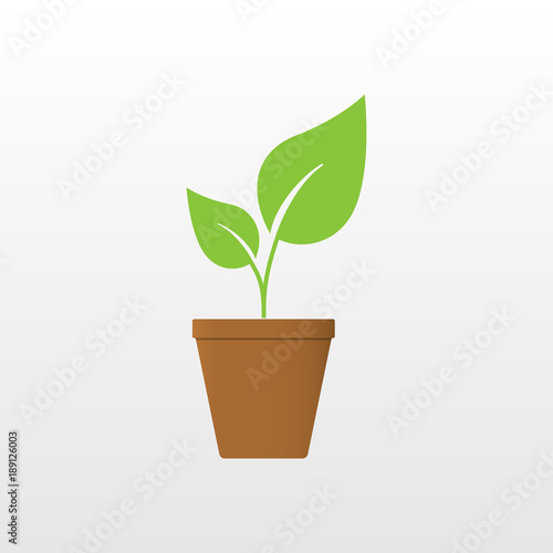 Seedling silhouette in flowerpot on white background.
