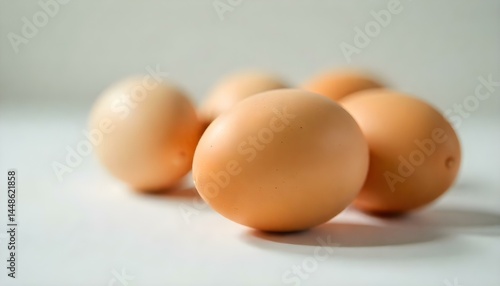 selective focus of chicken eggs on white surface