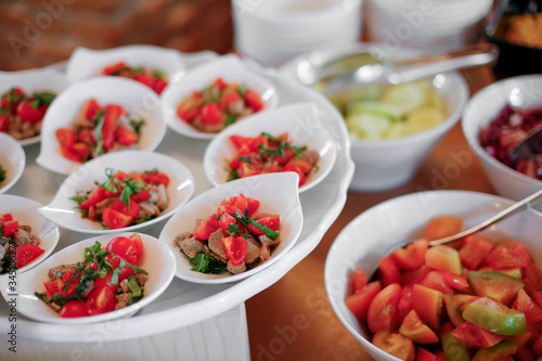 Self- Service con piatti e presine per poter scegli la quantità di cibo desiderata in una ristorante