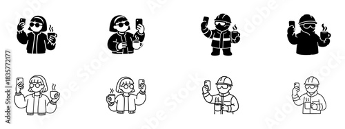 Selfie and Coffee Break Icons Set