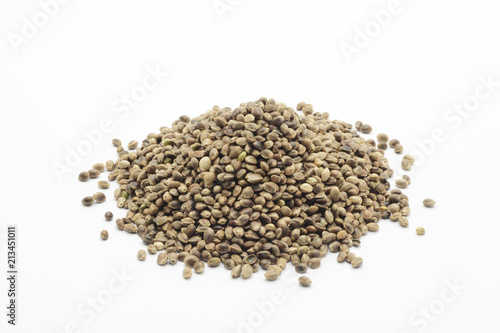 Semilla de cáñamo sobre fondo blanco