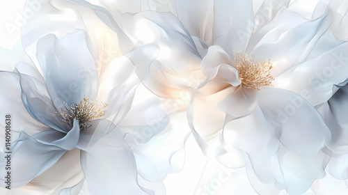 Semi-transparent, delicate silky flowers, petals overlapping, white background. beautiful artistic floral wallpaper. Floral. Illustration