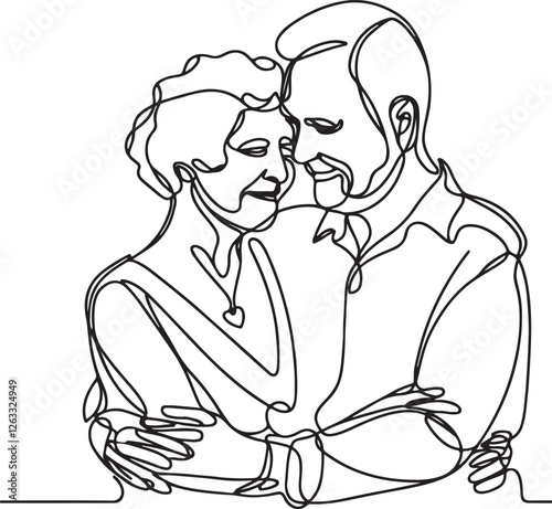 Senior Couple Romance in Beautiful Line Drawing
