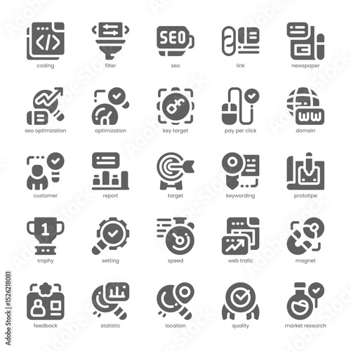 Seo Optimization Icon pack for your website, mobile, presentation, and logo design. Seo Optimization Icon solid design. Vector graphics illustration and editable stroke.