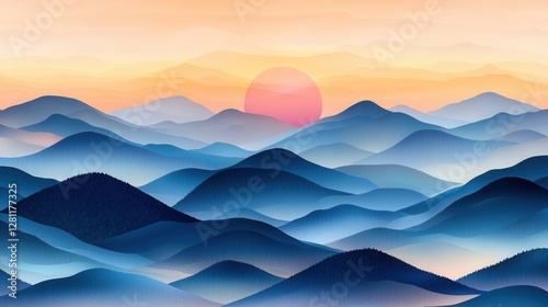 Serene Abstract Mountains with Soft Sunrise and Gentle Colors