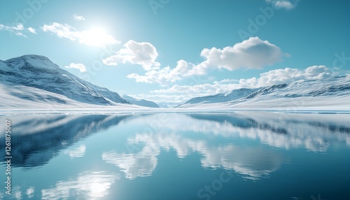 Serene Arctic Lake Reflecting Snow-Capped Peaks under a Cloudy Sky