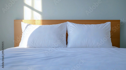 Serene Bedroom with Sunlight and White Pillows