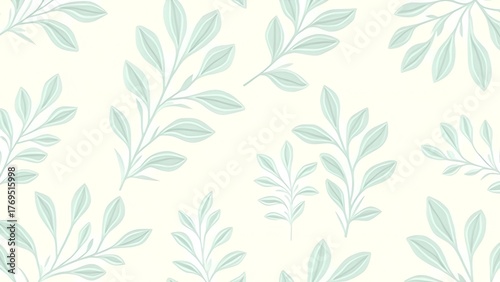 Serene Botanical Seamless Pattern with Delicate Mint Green Leaves on a Soft Cream Background