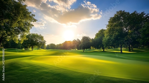 Serene Golf Course Landscape with Stunning Sunset Scenery