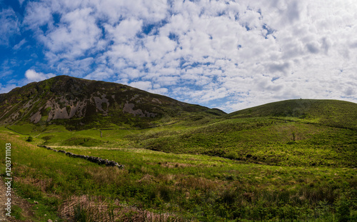 Serene Hills and Verdant Landscapes Near the Start of Minffordd Path to Penygader (Cadair Idris) Under a Sky of Billowing Clouds