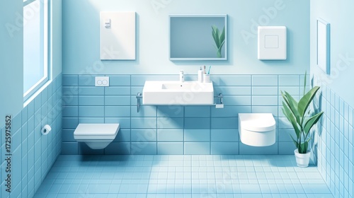 Serene Minimalist Bathroom Design: Modern Blue Tiles and Clean Lines