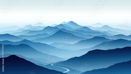 Serene mountain landscape scenic view digital illustration calm environment panoramic perspective