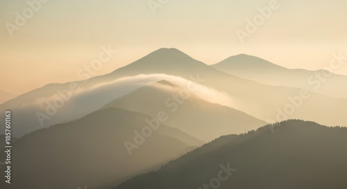 Serene mountain landscape with mist.