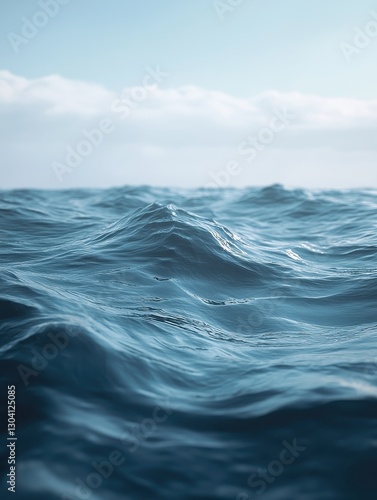 Serene Ocean Waves Under Blue Sky in Natural Light with Gentle Ripples and Soft Horizon at Calm Seaside Landscape for Tranquil Visual Appeal