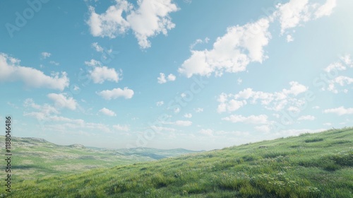 Serene Rolling Hills Under a Summer Sky: A Breathtaking Landscape