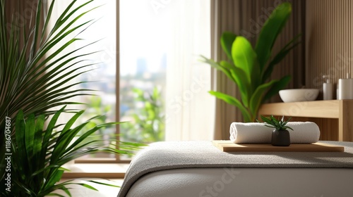Serene Spa Relaxation Clean Towel Plant Wooden Tray