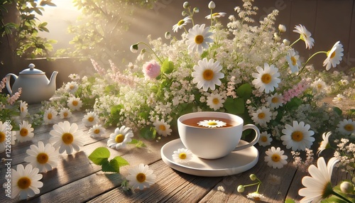 Serene Springtime Composition with Chamomile Teacup