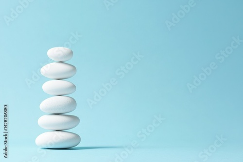 Serene Stacked White Sea Pebbles on Light Blue Background