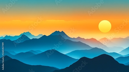 Serene Sunset Over Blue Mountain Ranges