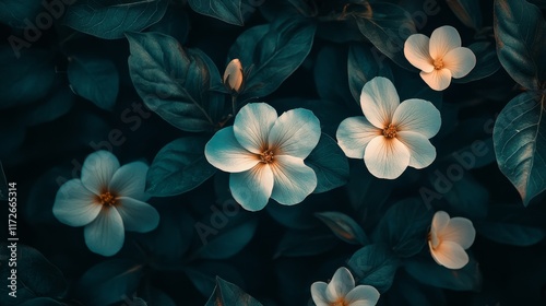 Serene Teal and White Blossoms