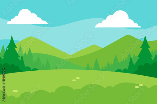 Serene Tranquil Green Meadow Nature Landscape Background Vector Illustration Background