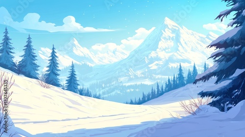 Serene Winter Mountain Landscape With Snow Covered Trees