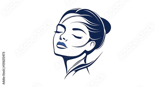 Serene Woman: Elegant Line Art Portrait Illustration AI Generated