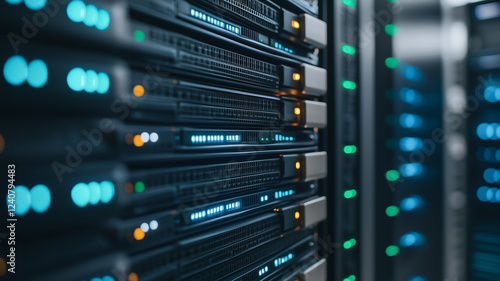 Server Room Power: Rows of powerful servers hum and glow with activity, their network lights blinking in a mesmerizing symphony of digital energy.